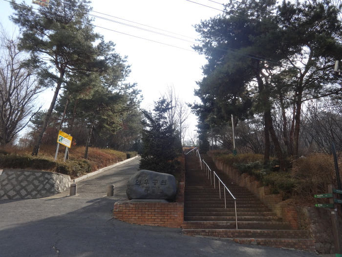 서울 마포구 창전동 와우산 서북쪽 자락 와우아파트 참사 현장에는 와우공원이 들어섰다. 와우공원으로 올라가는 중앙계단이다.