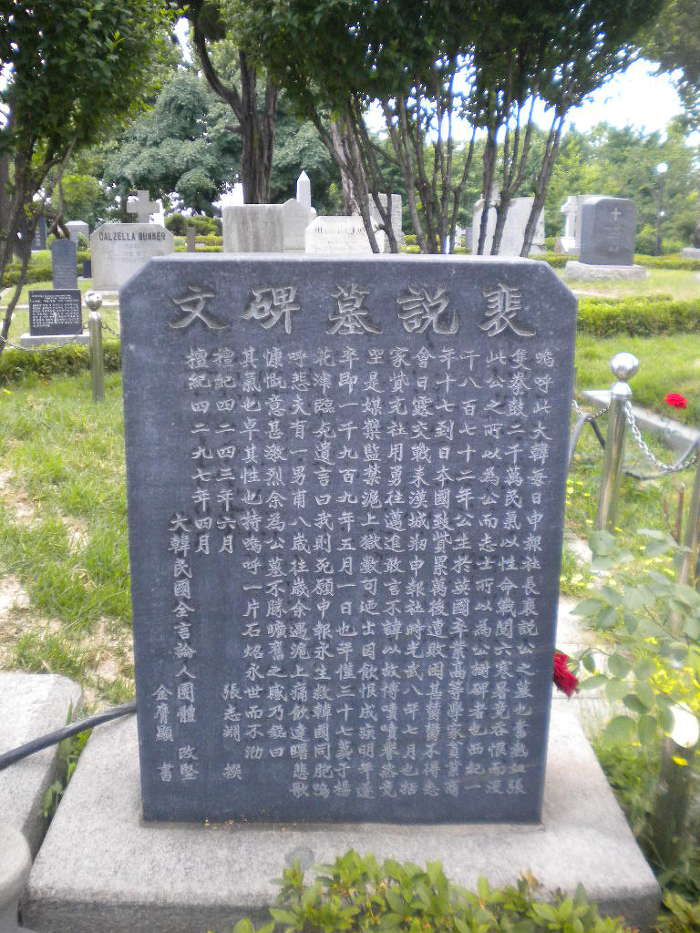 광복 후 20년이 지난뒤 한국편집인 협회의 언론인들이 성금을 모아 일제가 깎아 버린 묘비 옆에