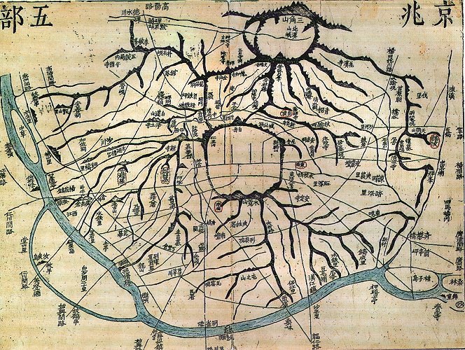 조선시대 한성부는 도성과 그 주변 10리까지를 관할했다. 이 도판에서는 윤곽만 그려져 있는 도성 내부를