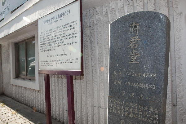 부군당 앞에는 비가 세워져 있다. 비문에는 1450년 4월 8일에 건립된 것으로 기록되어 있다.