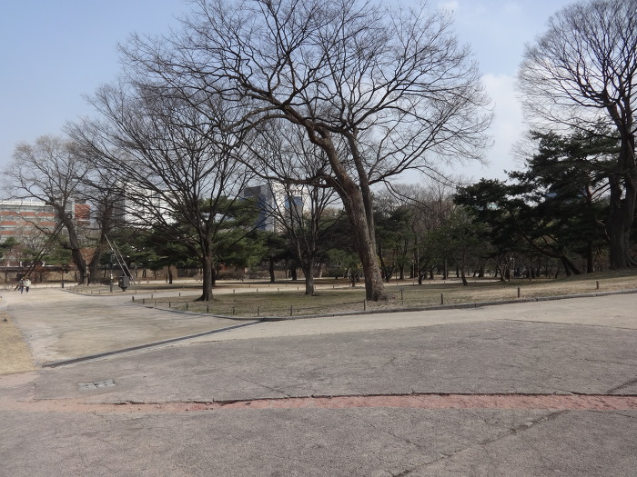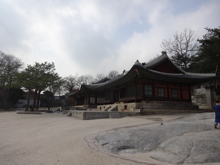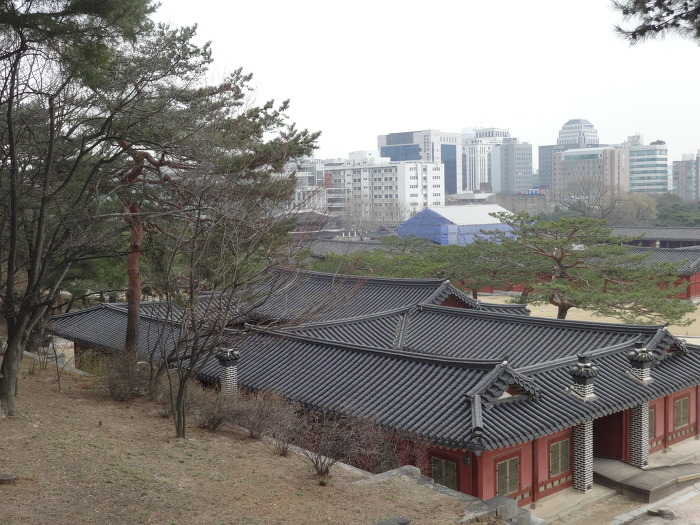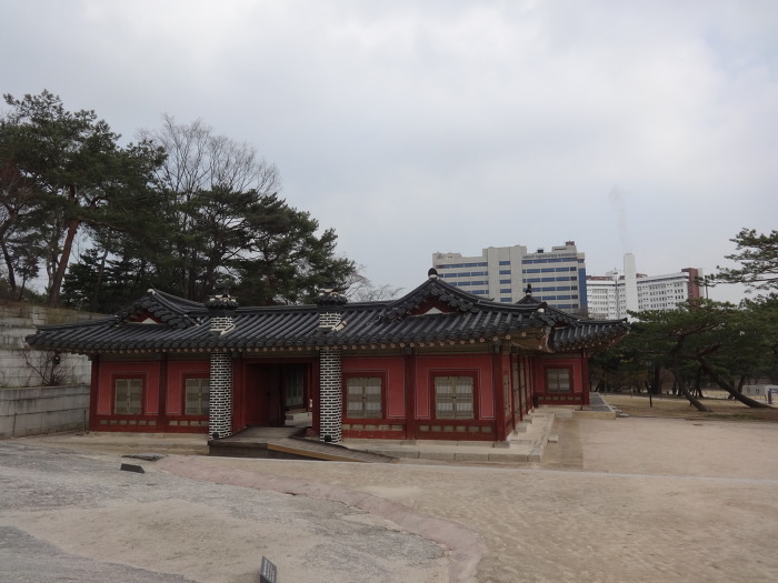 그 뒤로 보이는 돌로 만든 단은 후대 정조 때 설치한 사도세자의 사당인 경모궁의 유적이다.