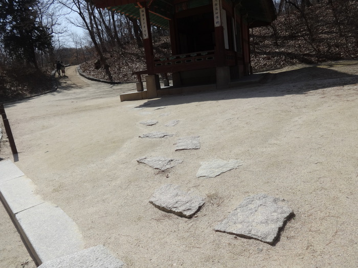 그 양반 발걸음을 익히도록 설치한 징검다리 돌조각이다.