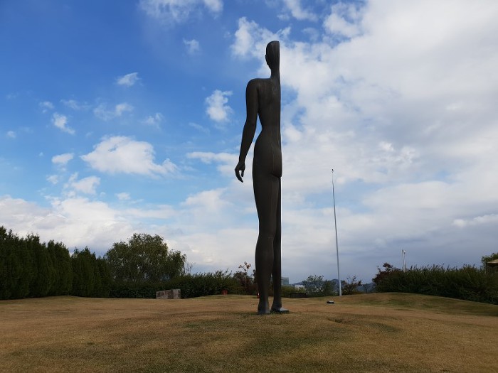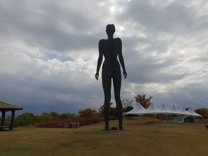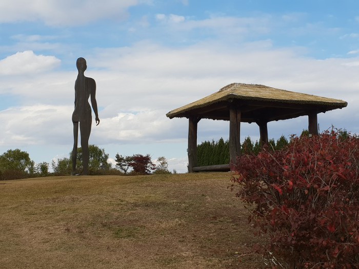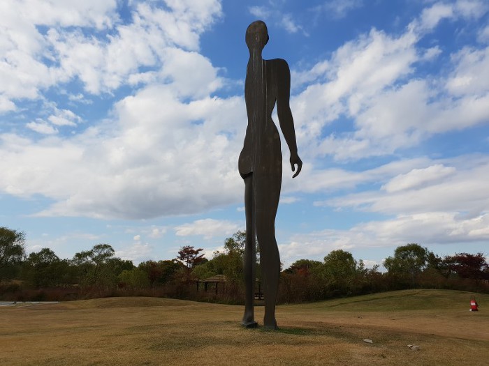 골프장 언덕에 인간조각상이 있다.사방에서 보면 그 모양이 제각각이다.