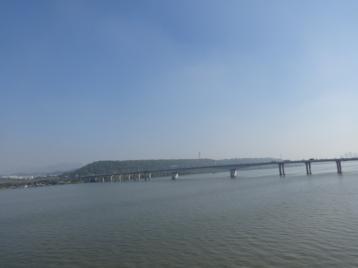 서강이 선유봉을 지나 안양천을 만나 파강(巴江)을 이루며 '꼬리치 듯' 난지도 앞을 흐른다.