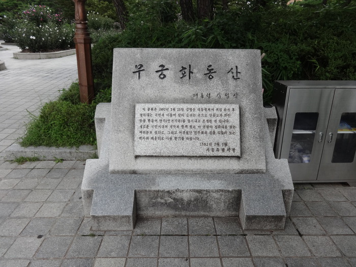 동산 입구에는 김영삼 전 대통령이 쓴 ‘무궁화동산’이라는 글자를 새긴 표지석이 서 있다. 그 속에는 이런 글이 적혀 있다.
