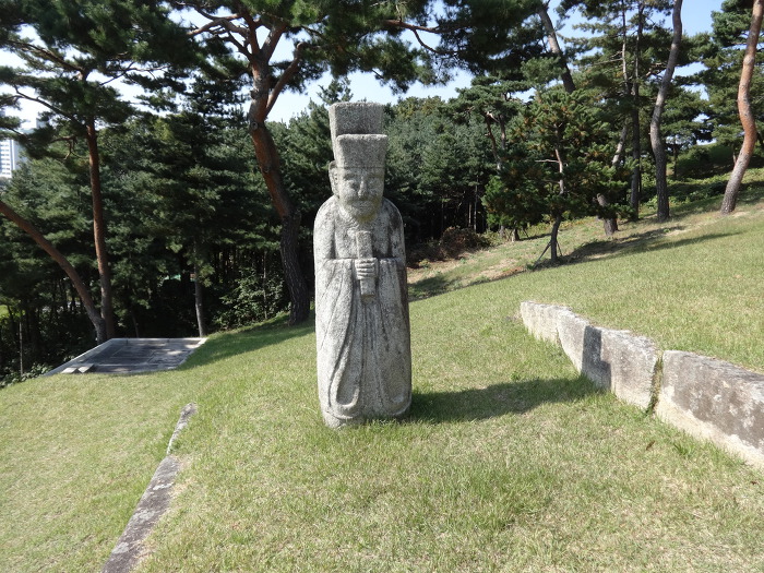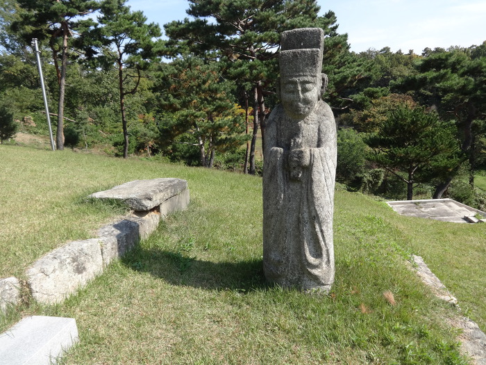 묘소를 수호하기 위해서 세우는 문인석 1쌍이 있다. 한편 묘역 입구의 비각에는 신도비가 안치되어 있다.