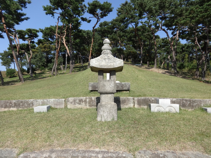 상석이 있다. 묘표의 비문은 안평대군(安平大君, 1418~1453) 이용(李瑢)이 썼다. 그리고 아래쪽에는 장명등이 있고, 그 좌우에