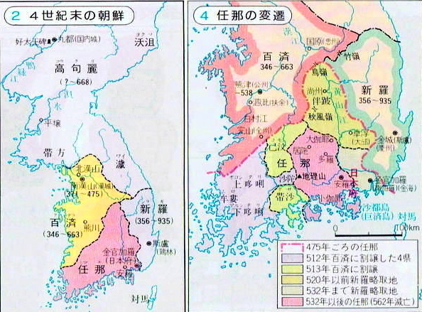 또한 더 나아가 고분시대의 '왜(倭)' 가 강력한 국가라면서 한반도 남부를 점령했다는 임나 가야설, 임나일본부설의 논리까지 펼치며 이를 현재 국사 교과서에서도 가르치고 있습니다.
