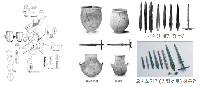 그리고 조몬시대 이후에 일본열도로 이동한 야요이인(彌生人)의 정체는 벼농사 기술을 가지고 이동한 고조선인(古朝鮮人)입니다. 이는 일본 벼농사 유적으로 유명한 큐슈 북쪽 요시노가리 유적의 묘제 양식과 유물로서도 증명됩니다. 또한 야요이 집터 유적지의 형태도 충남 송국리형(松菊里形) 선사 유적지와 동일하다는 사실도 알려 졌습니다.
