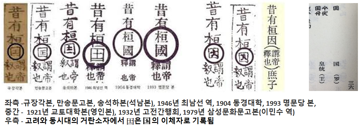 1. 삼국유사의 석유환국(昔有桓囯, 昔有桓國) 판본의 기록