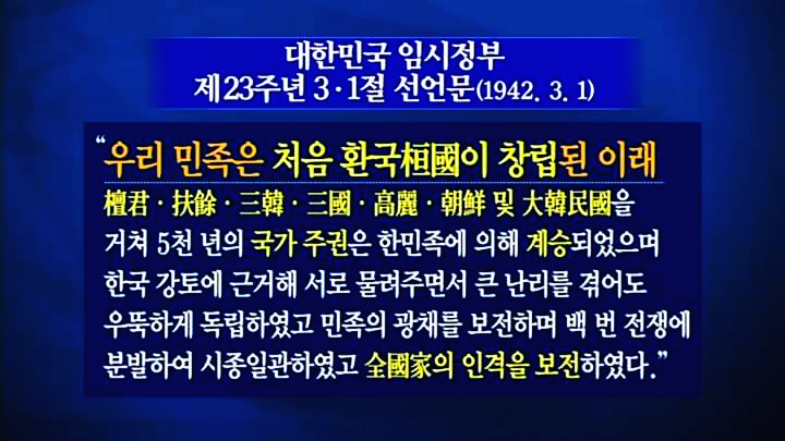 먼저 대한민국 임시정부 제 23주년 3.1절 선언문에서는 우리 민족은 환국에서 부터 창립되었다고 하고 있으며
