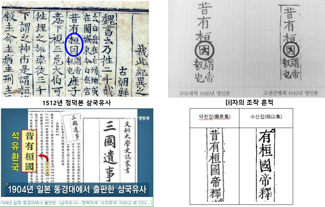 이런 여러 증거들을 통해 원래 삼국유사에 기록된 것은 석유환국(昔有桓囯) 이라는 사실을 알수 있습니다.