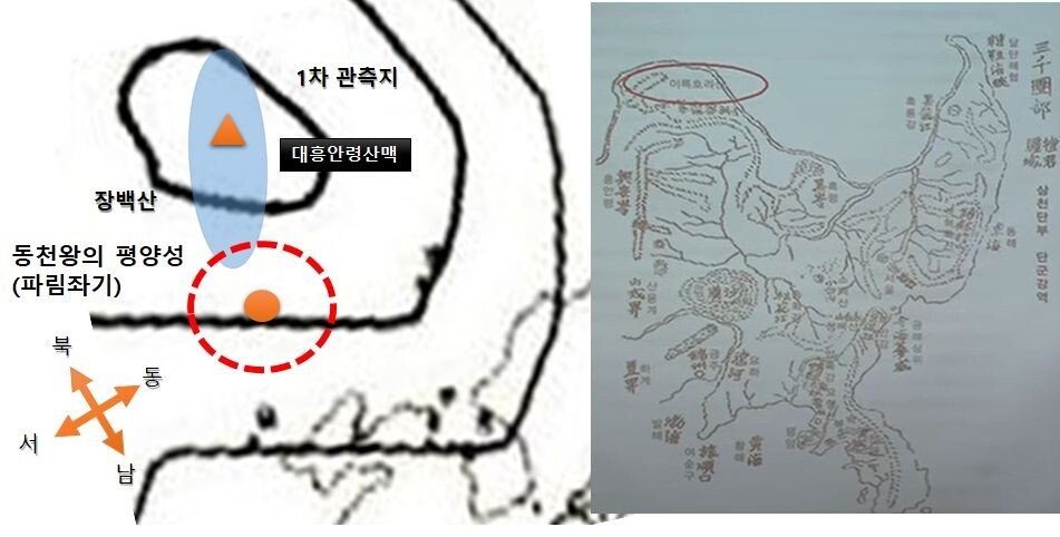 천문 관측 위치에 대해서는 1차 천문관측 위치를 참고 하여, 태백산이 있다고 보는 이륵호리산으로 추정하였습니다.