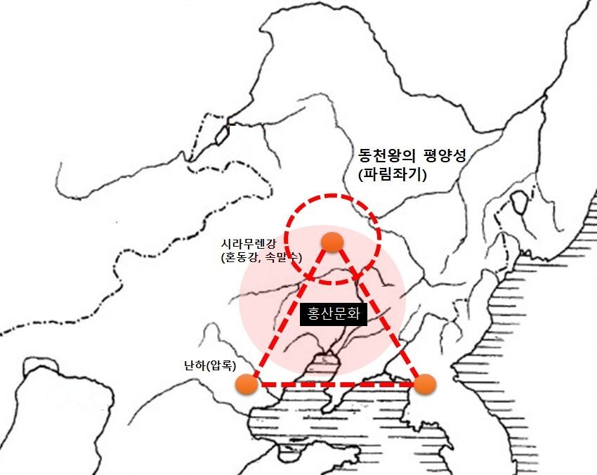 실제 문헌 기록으로 동천왕은 단군(檀君)과 연관되어 있는 인물이며 따라서 이곳을 동천왕의 평양성 위치로 비정할수 있습니다. 또한 이곳 파림좌기(巴林左旗)에서 고구려 성터가 발견되었습니다. 즉 이 고구려 성터가 동천왕의 평양성으로 생각됩니다.