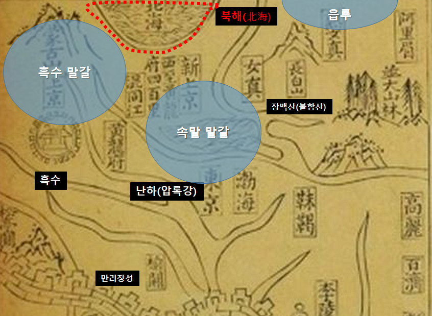 저는 흑수말갈의 동쪽바다는 동해가 아니라고 생각합니다. 거란지리지도를 잘 보시면 이 이유를 풀수 있는 단서가 있으며, 흑수말갈의 동북 쪽에 의문의 바다인 북해(北海)가 있습니다.