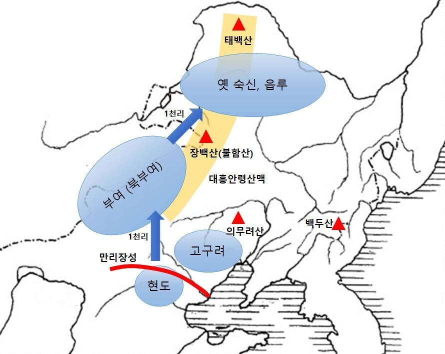 현재 강단사학계에서는 동쪽의 큰 바다를 동해로 보고 불함산을 백두산으로 판단하고 있으며, 아래와 같이 읍루 및 부여, 고구려, 옥저의 강역들을 통설로서 주장하고 있습니다. 하지만 백두산(불함산)의 북쪽에는 읍루가 있는것이 아니라 고구려가 있으며(사료에서는 고구려의 북쪽에 부여가 있으며 더 북쪽으로 가야 읍루가 있습니다) 또한 부여의 남쪽에 있어야 하는 고구려 졸본 위치도 사료 기록에 의하면 이곳이 아닙니다. 과연 이러한 해석이 맞는 것 일까요?