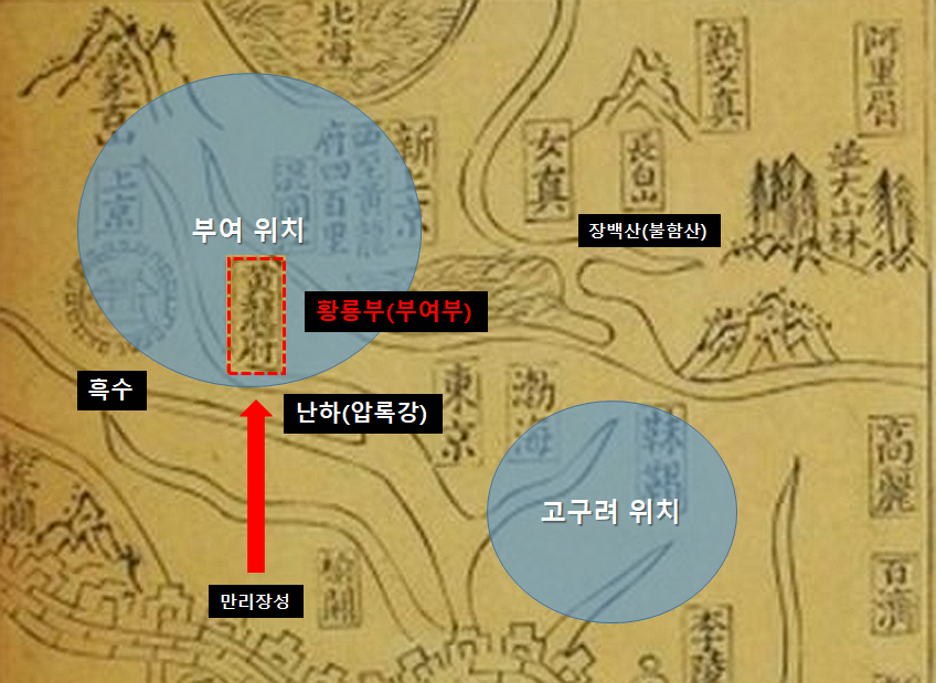 또한 <요사지리지>에 보면 부여의 위치에 대해서 또 알수 있는 부분이 있는데, 부여성이 등장하고, 부여(부)를 황룡부로 바꾸었다고 하였는데 거란지리지도에 보면 황룡부의 위치는 난하의 상류, 요나라 상경 임황부의 동쪽에 있습니다. 이는 현재 추정하는 부여(夫餘)의 위치와 동일합니다.