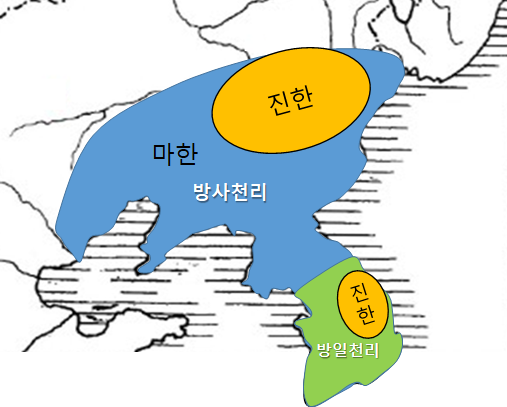 한은 3종류가 있는데 위지에 이르기를, 한은 대방(군)의 남쪽에 있다. 동서는 바다로 막혀있으며, 남쪽은 왜와 접해있다. 방 사천리쯤된다.