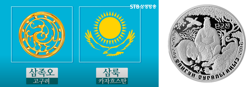 그리고 오환의 한자를 보면 烏桓 또는 烏丸으로서 烏(까마귀 오)는 까마귀로서 즉 삼족오(三足烏)를 의미하며, 桓(밝을 환) 우리 밝달 민족을 지칭하는 한자입니다. 따라서 오환이 우리민족과 관련이 깊다는 것을 알수 있습니다. 그런데 중앙아시아에 있는 카자흐스탄이 태양과 까마귀(삼족오)를 국기로 사용하고 있습니다. 또한 카자흐어로 까마귀를 '케레이'라고 하는데 그들 스스로 케레이의 후손이라고 생각합니다. 또한 카자흐스탄에서 단군주화도 발행하여 화제가 된 적도 있습니다.