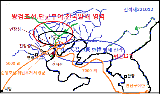 마한.진한.변진 3 한 영역은 지금의 발해안 북안 해안 지역과 지금의 요동 및 지금의 대한반도 전체였다.