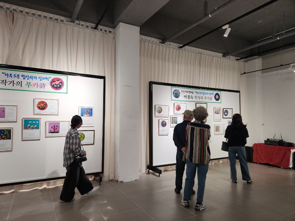 한가위 연휴, 창의융합 감성언어 푸카詩 전시장을 찾아주시는 관람객들과 함께하며 푸놀치 마음여행으로 여유로운 추석 치유산타의 충만일기