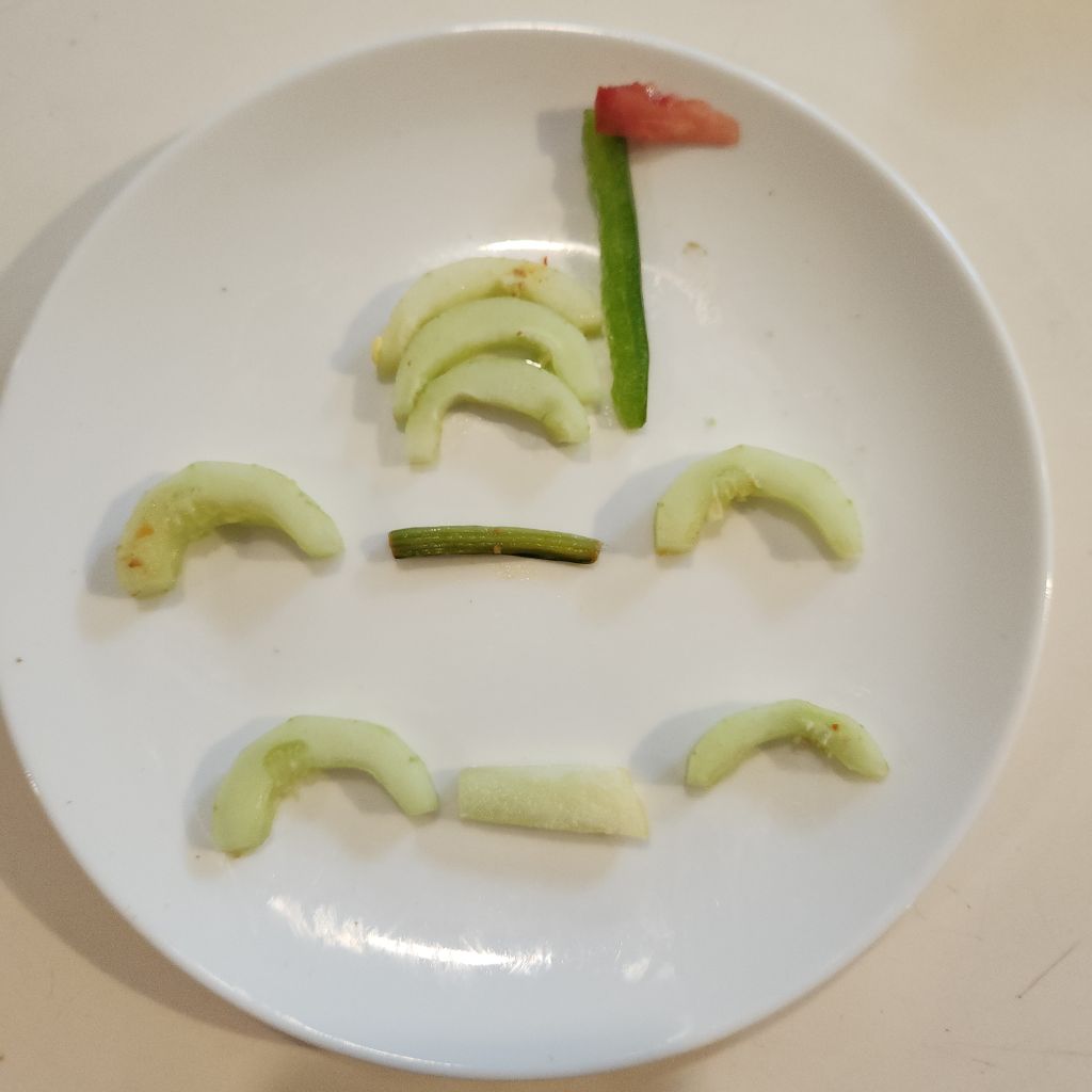 볶은국수로 표현한 곱슬머리에 흰머리카락이 듬성듬성,