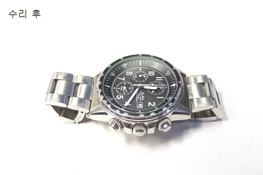 시계유리에 기스가 심해서 새유리로 교체하고, 시계약도 새걸로 교체후 알바시계수리 완료 하였습니다.