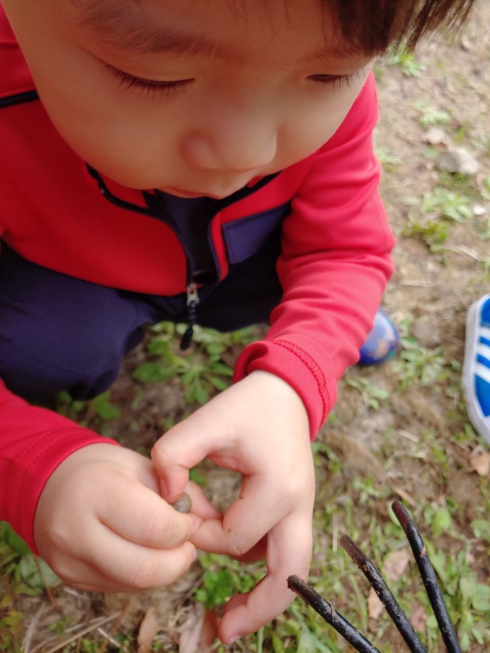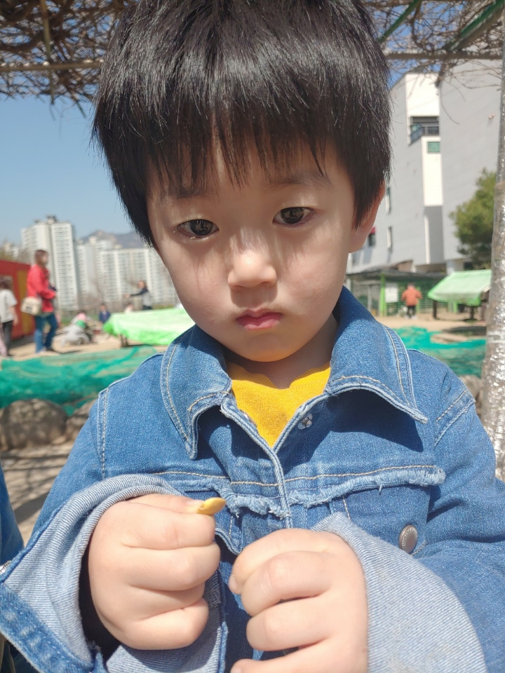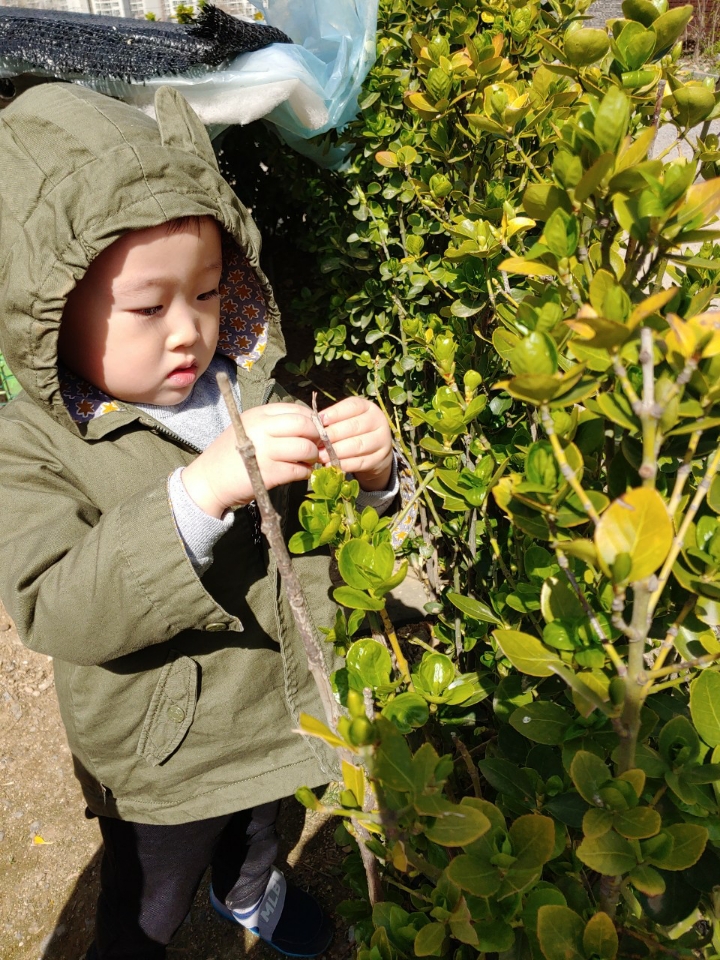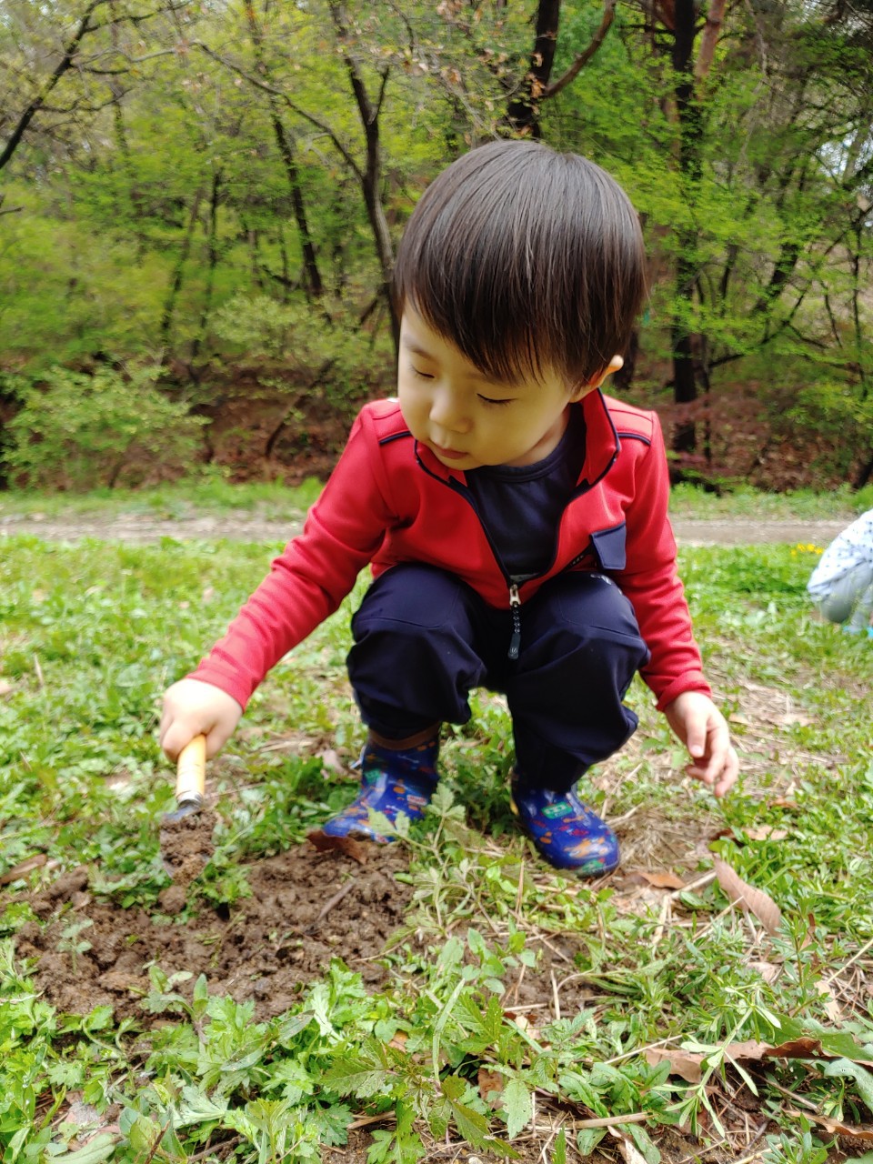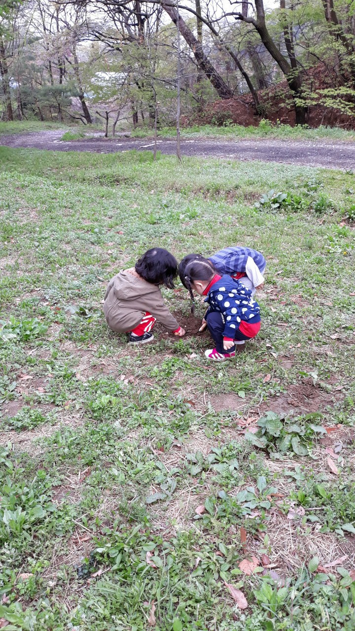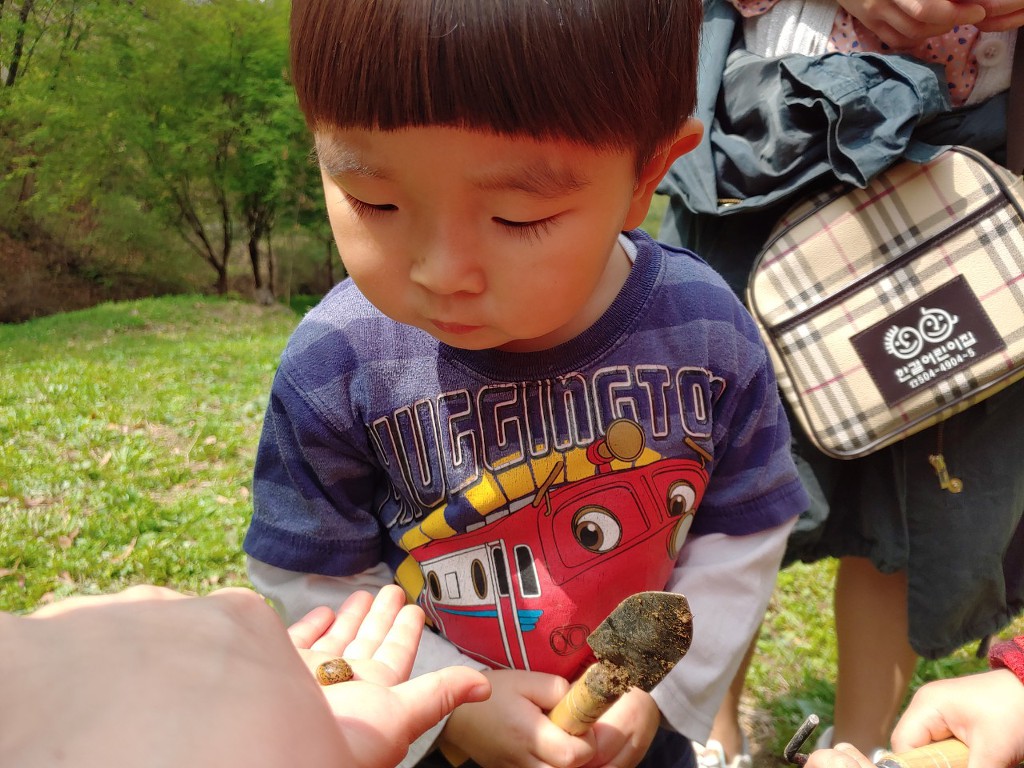 열매를 보면 땅에 심어주는 00이인데 열매의 껍질이 까져 있어서인지 심지 않고 집에 가져가겠다고 하네요^^