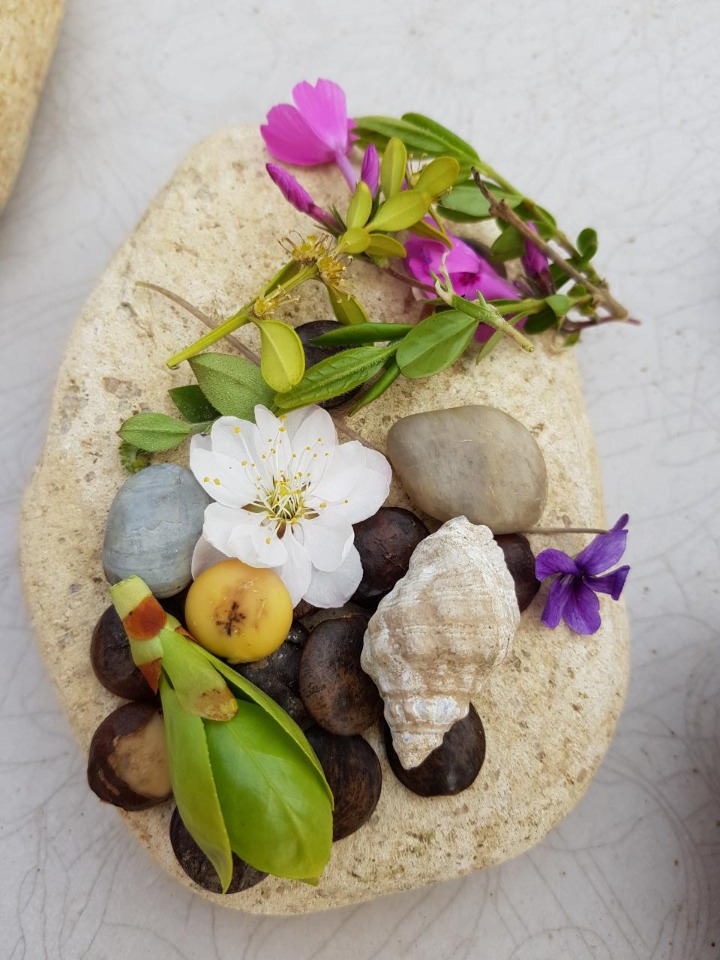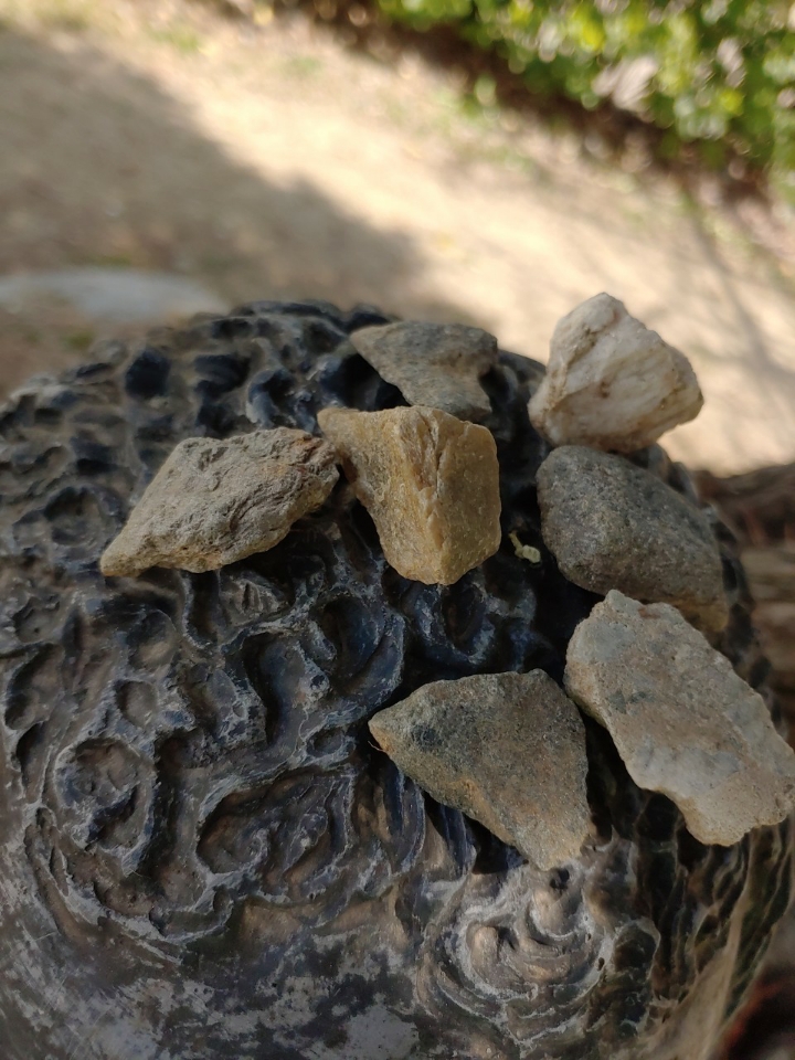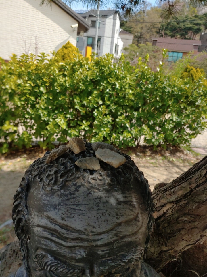 그러더니 머리에 돌멩이들을 올려놓아줍니다.
