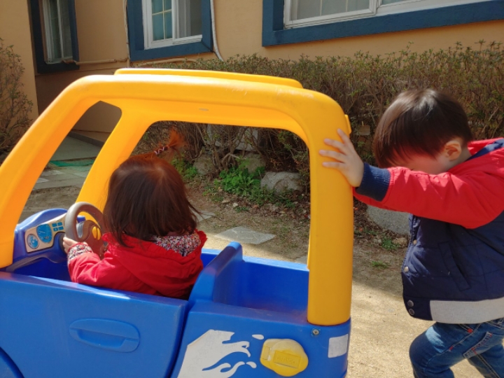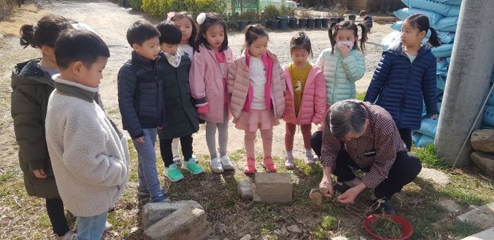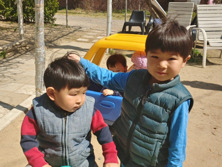 매일 보는 “교실 밖 교실” 문밖이 교실인 농장 풍경이지만 꽃마리반(만 2세) 영아들에게는 한결 어린이집 마당이 늘 새롭습니다.