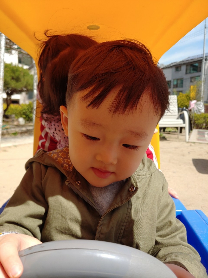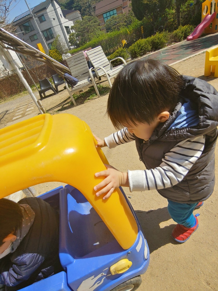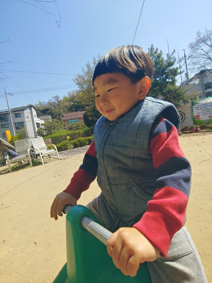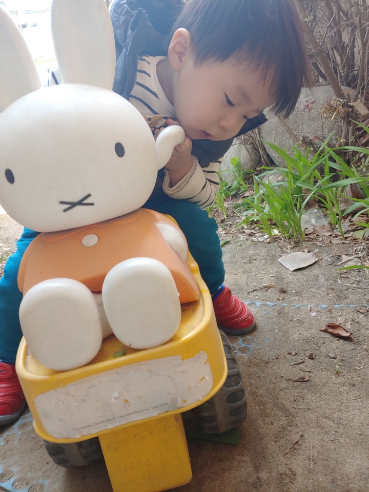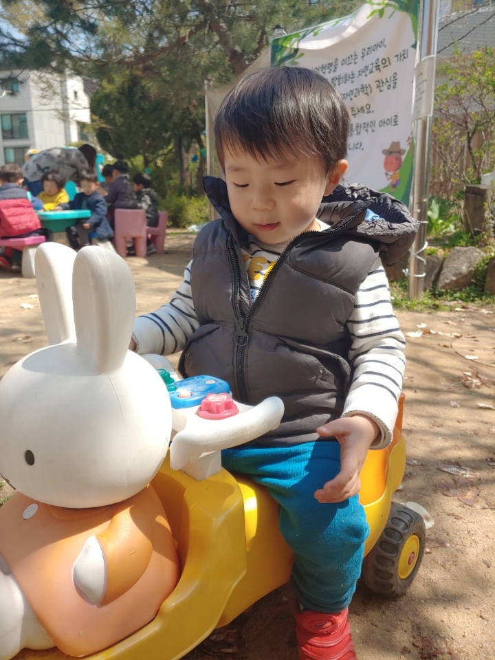 요즘 실외놀이터의 탈것들에 관심이 가는 00이.