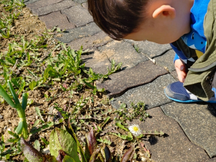 00이도 마당에서 뭔가를 발견하고는 한참 동안이나 들여다봅니다.