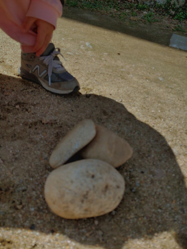 그러더니 옆에서 돌을 주워와 슬쩍 놓아줍니다.
