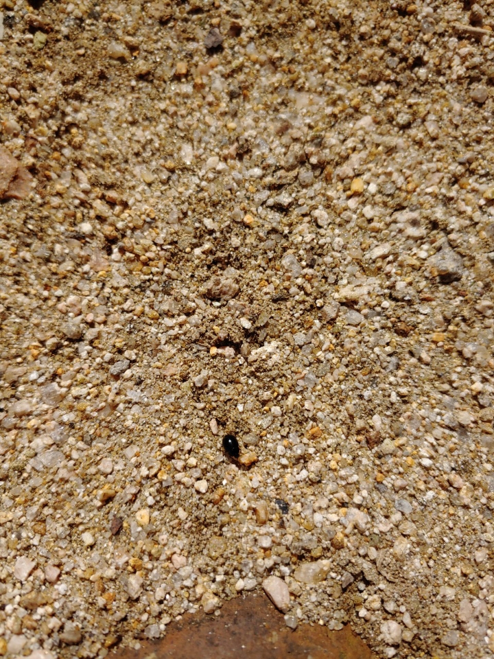 미피를 타고가다 발밑에 개미를 발견했어요.