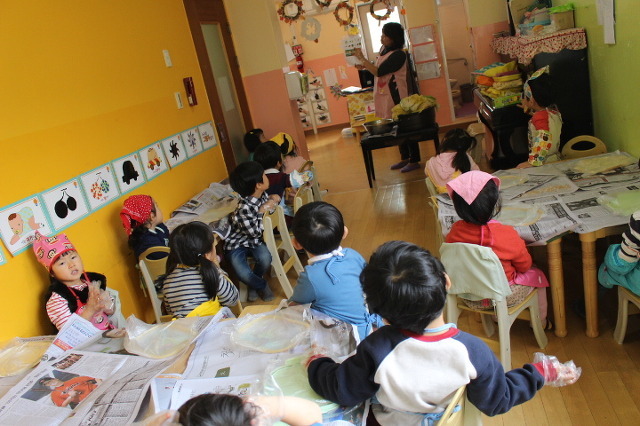 배추 한장한장속에 양념을 버무리는 방법을 교사가 시범으로 보여 주셨어요^^