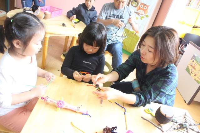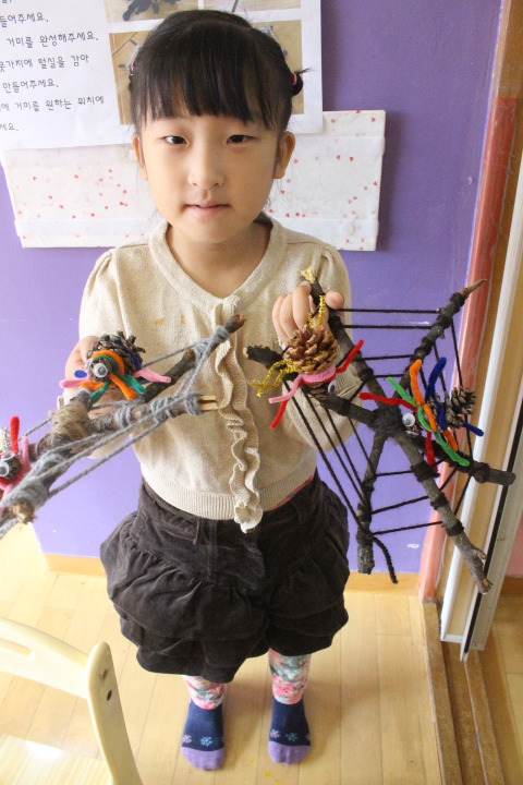 거미만들기 교실을 방문해 아버님과 함께 멋진 거미를 만들었네요.