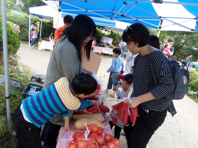 졸업생 어린이가 손님이 원하시는 야채를 판매하고 있네요. ㅎ