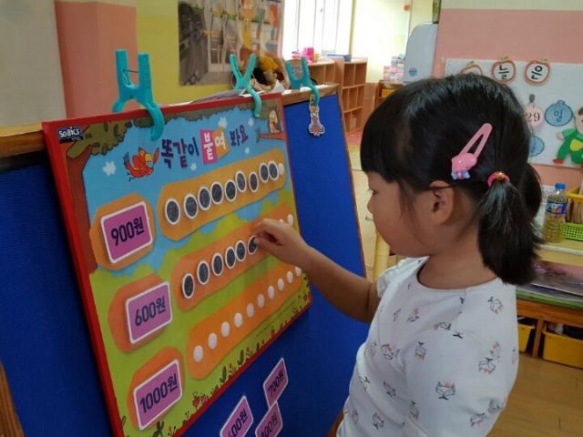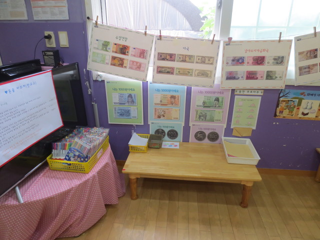 시장놀이 하기 전에 교실에서 돈에 대한 개념도 알고