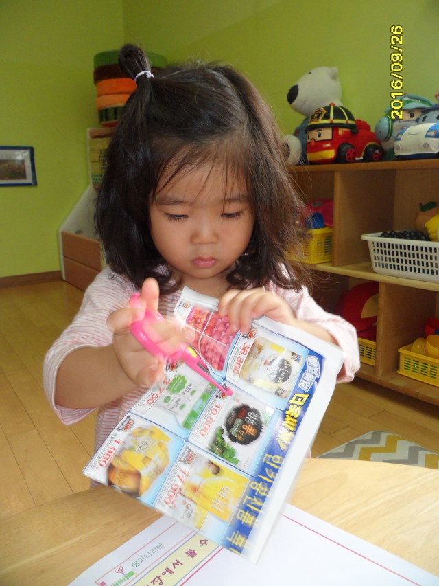 아빠, 엄마께도 내가 사 준 다며 사진 속 먹거리를 찾아 열심히 오리고 붙여 주었답니다.