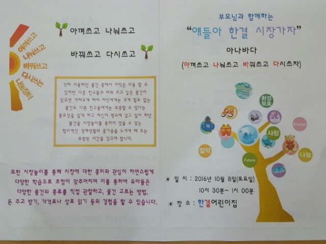 2016년 부모님과 함께하는 "얘들아 한결 시장가자" 아나바다(아껴쓰고 나눠쓰고 바꿔쓰고 다시쓰자)