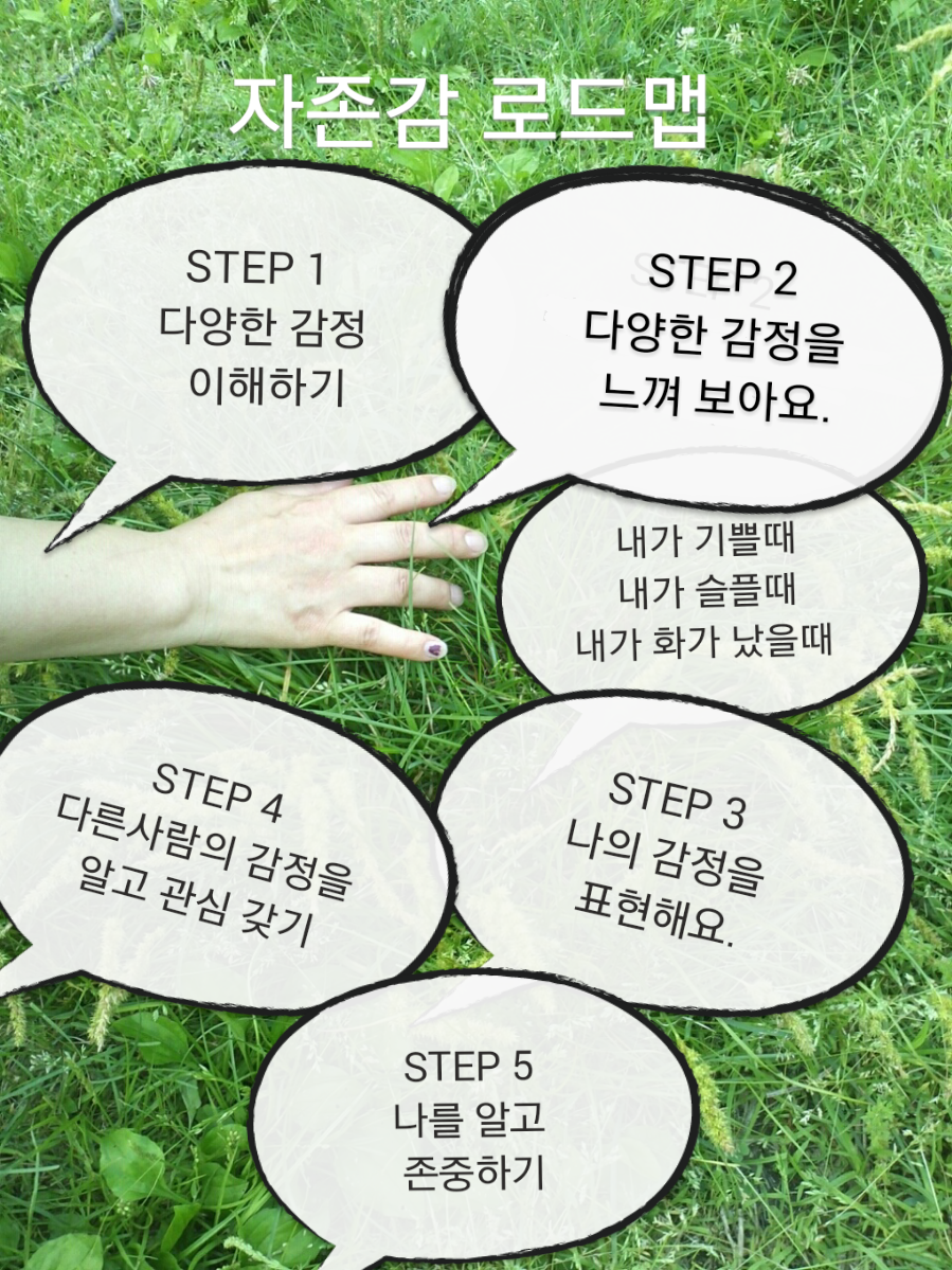 - 나와 다른사람의 감정 알고 표현하기, - 나의 감정 조절하기 부분을 발달시키게 도와주기 위한 자존감 로드맵" 입니다.