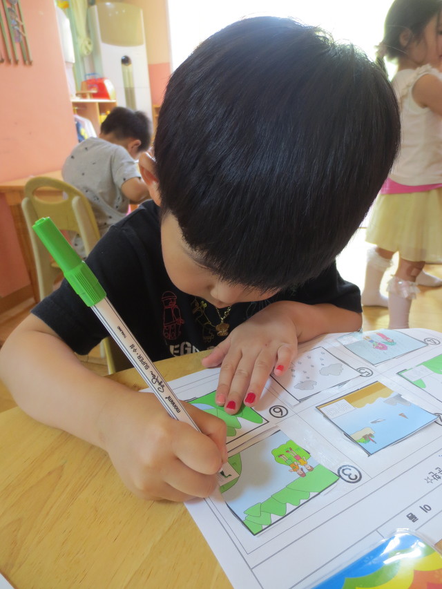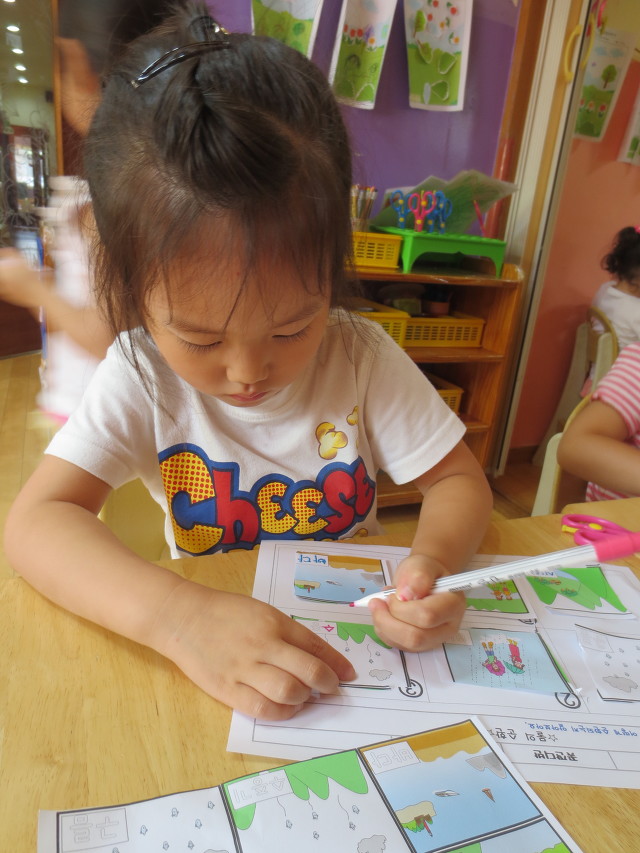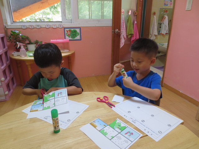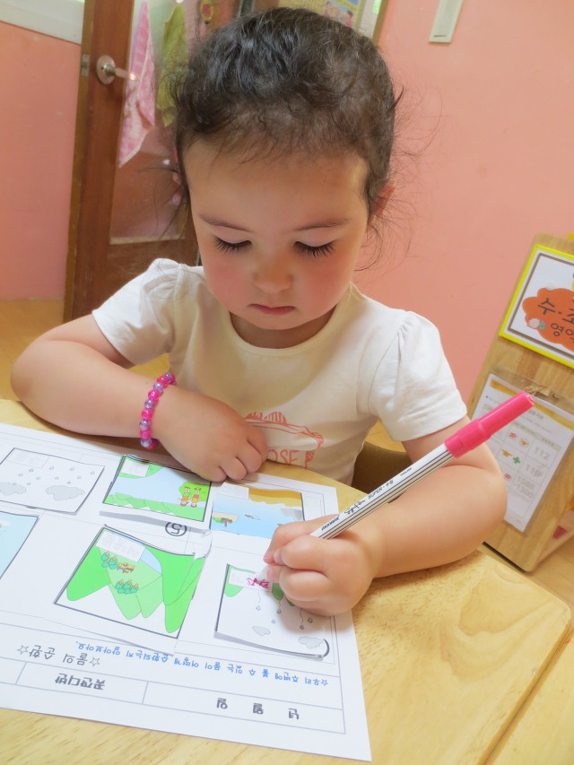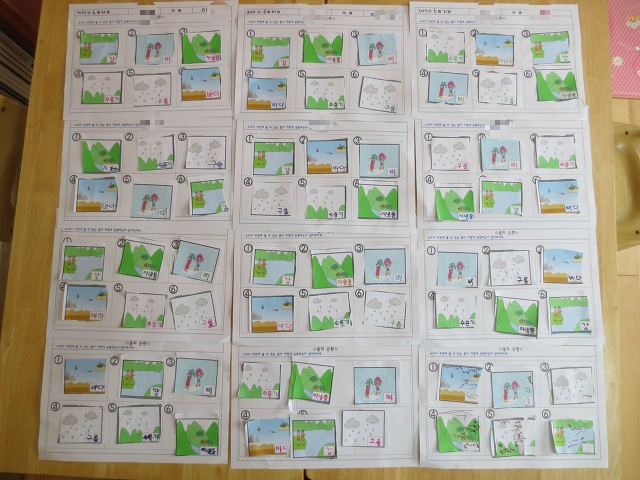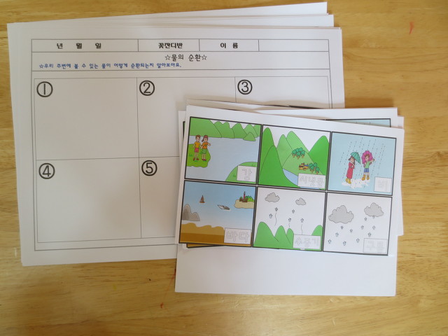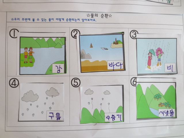그리고 교실로 들어와 물의 여러 모습 그림을 활동지에 붙여보며 마무리 해주었습니다.