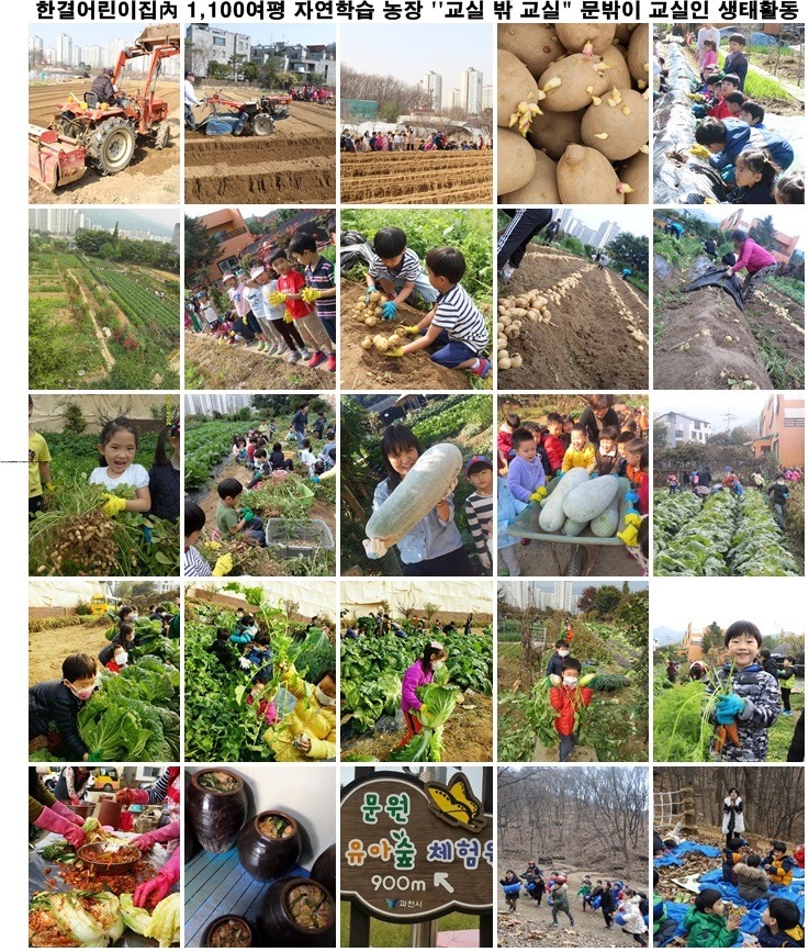 자연이 어린이들의 스승인 한결어린이집은, 아이들의 건강한 식단으로 원내에 1천1백여평의 자연학습장 먹거리 농장을