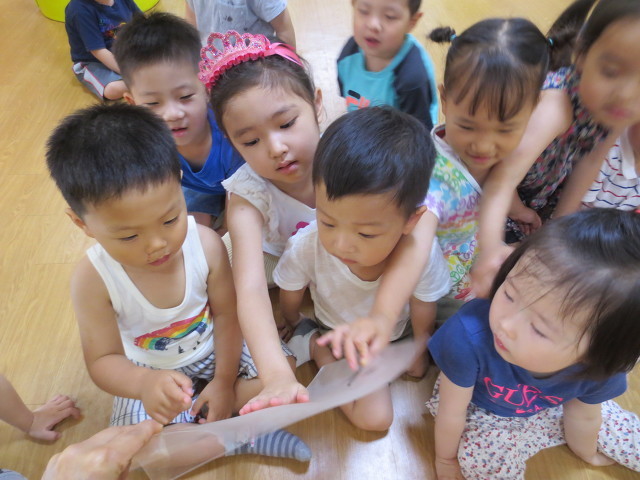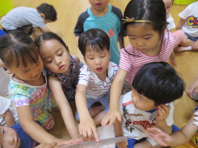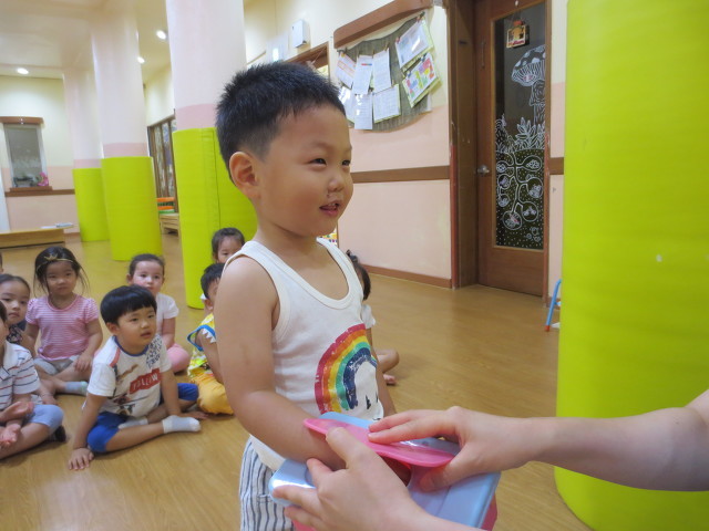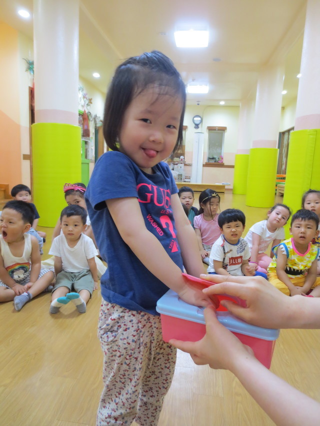 비밀상자 속에 무엇이 있을까?를 궁금해하는 애기나리반(만 2세) 친구들의 표정도 다양하지요.*^^