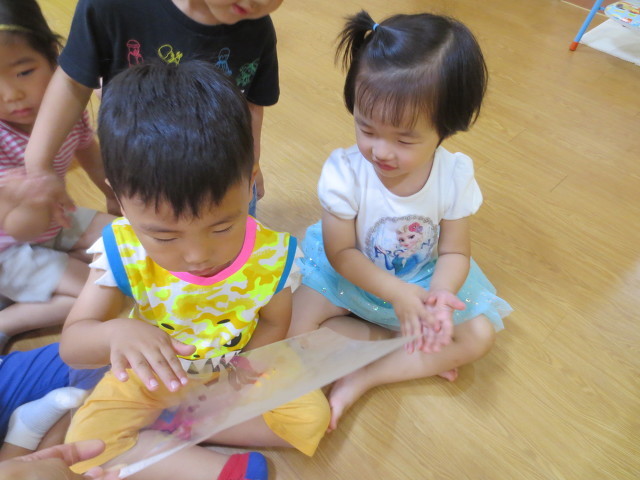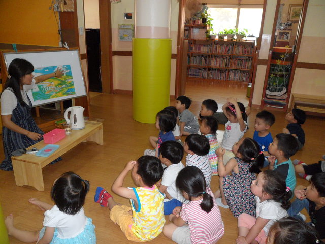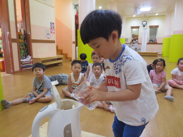 - ‘물의순환’이라는 주제로 물의 필요성과 물의 온도에 따라 물의 상태가 변하는 과정을 실험하였습니다.