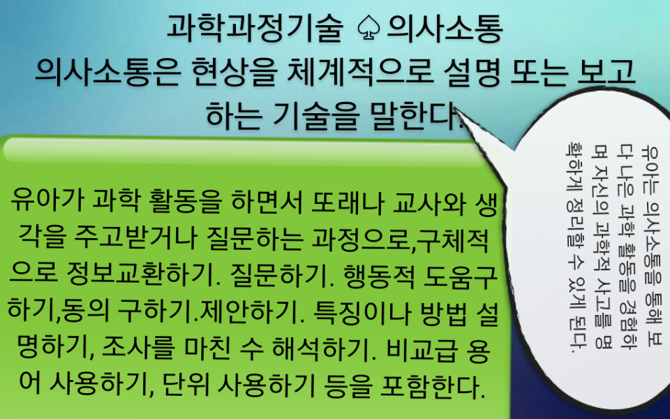 과학에서 사고하고, 탐구하며 문제를 해결하기 위하여 사용하는 모든 것을 과학과정기술이라고 말한다.