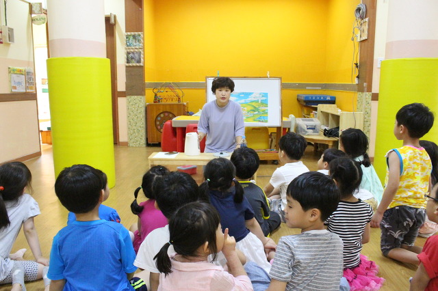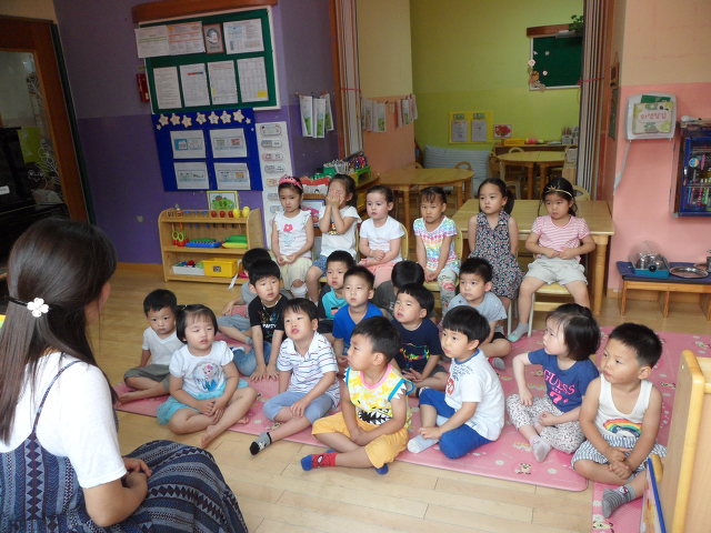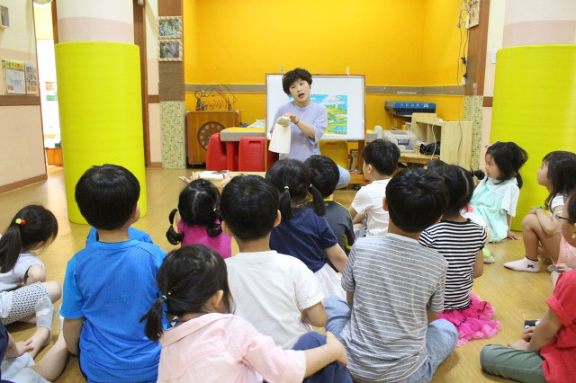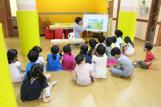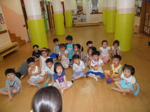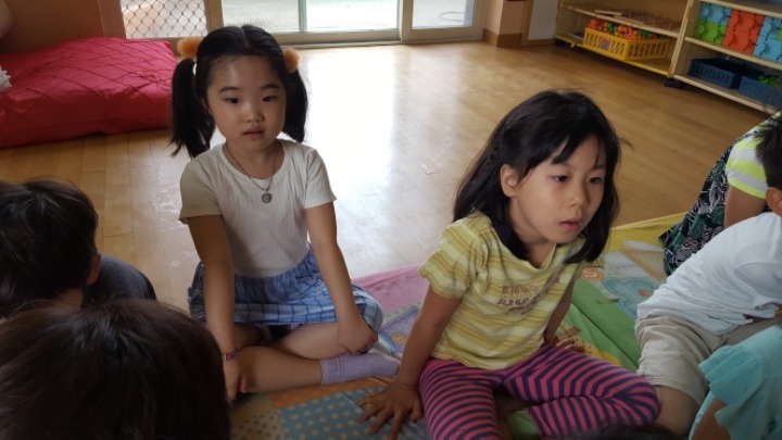 "물의 순환" 물의 순환에 대한 주제로 '물의 순환송'을 함께 노래를 부르고 애기나리반(만 2세),