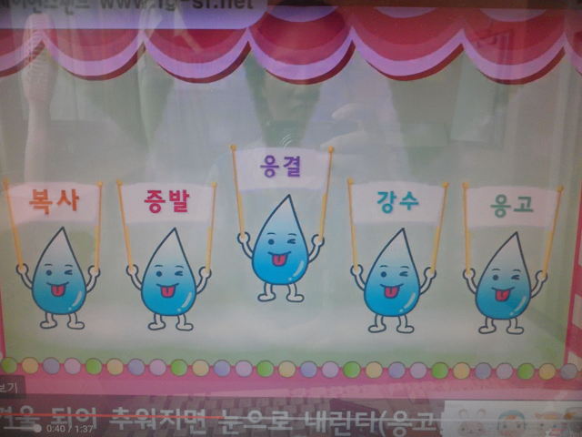 실험 활동 후 물방울의 여행이라는 동영상을 관람하여 보았어요.