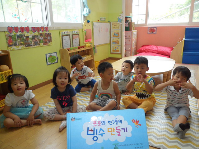 oo가 오늘 가져온 동화책도 오늘배운 물이 변했던 과정의 한 부분으로 애기나리반 친구들과 재미있게 읽어보았답니다.