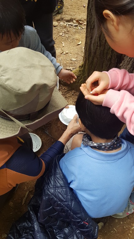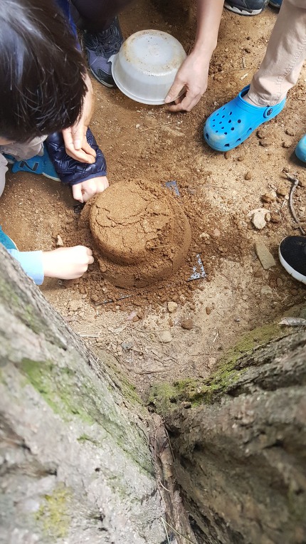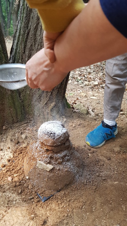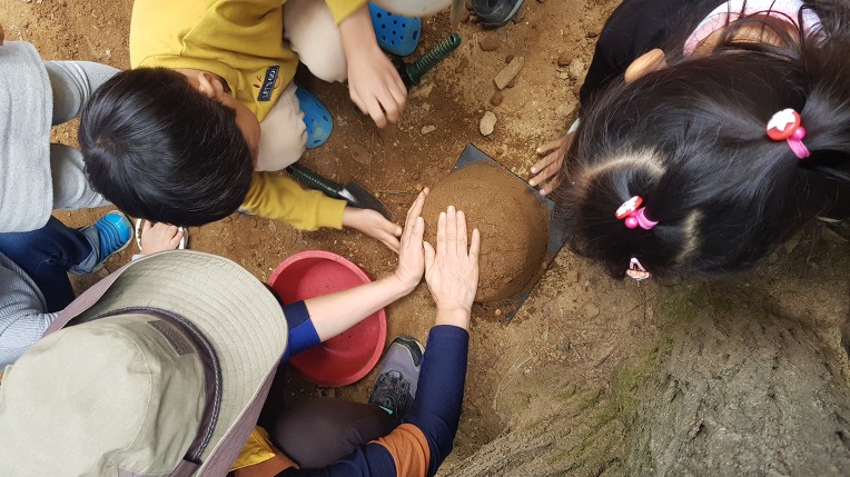 옹기종기 모여 음식도 하고, 모래 땅도 파고,